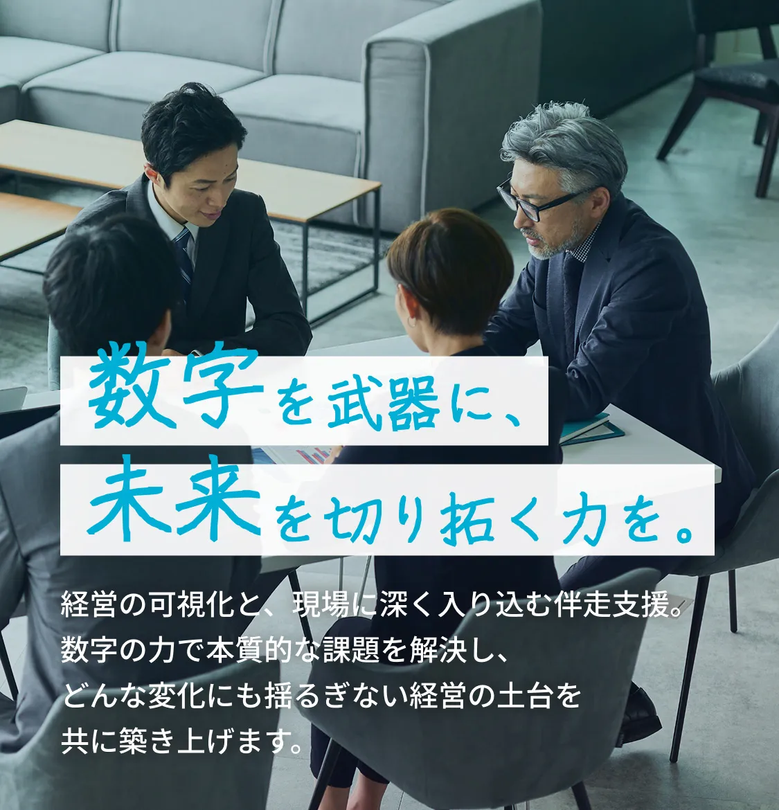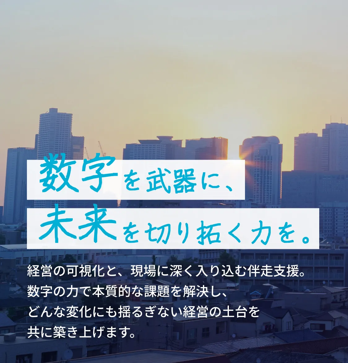 企業が持つ本来の力を守り、成長を加速させること。そのために「戦略・実行・可視化」を一気通貫で支援する仕組みを整えました。私たちは、客観的なデータと血の通った伴走支援を通じて、未来を切り拓くすべての企業の基盤を、共に創り上げていきます。